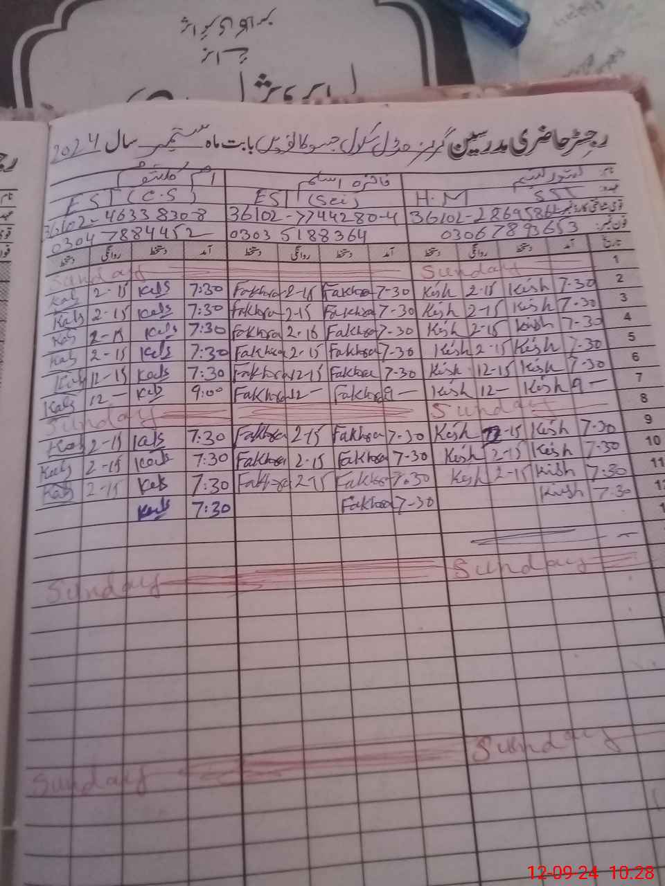 | Name: Ki**** Na**** Designation: (School Headmaster's/Headmistress's) SST GENERAL Phone/Cell Number: 03**** |