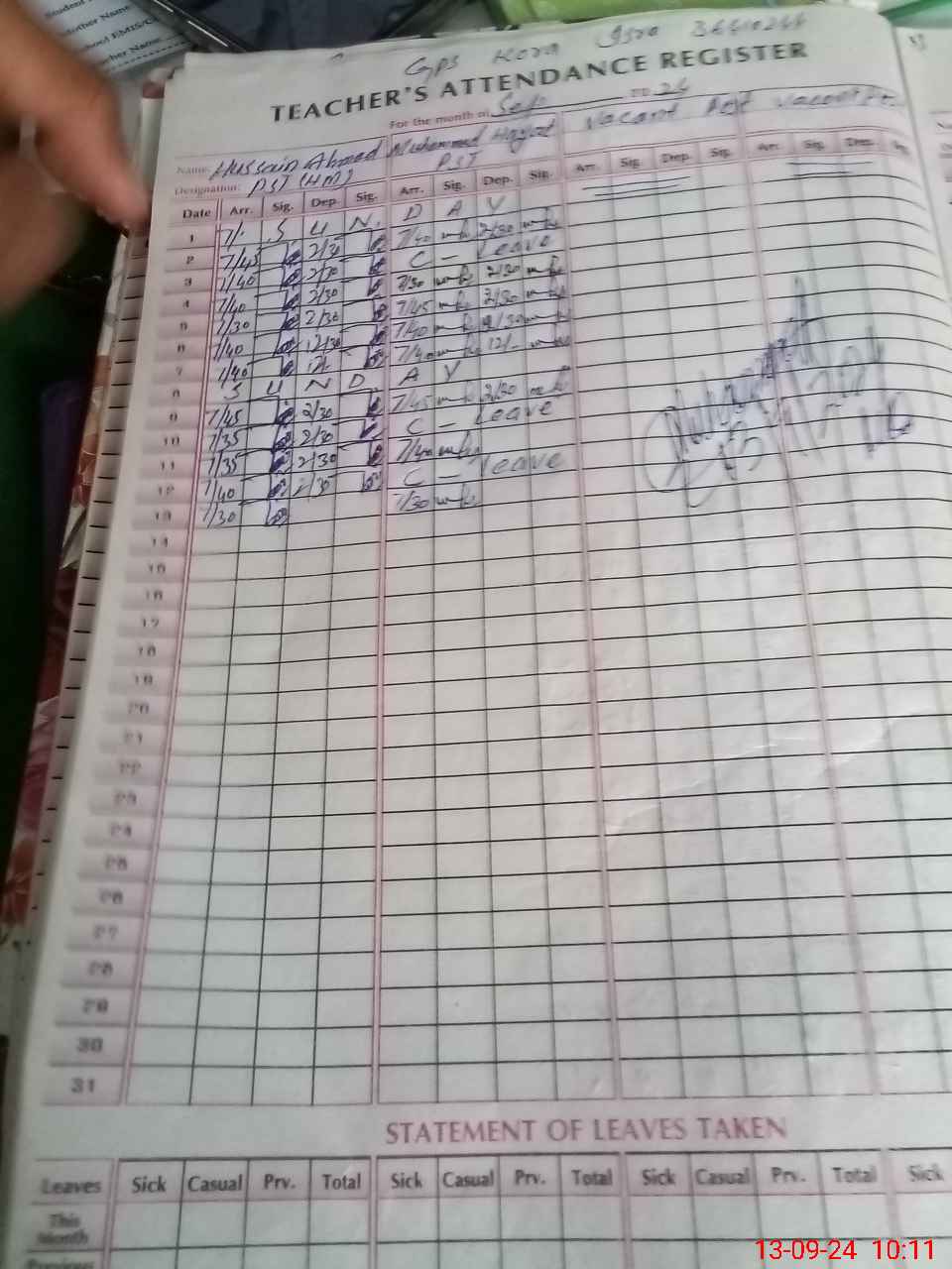 | Name: Hu**** Ah**** Designation: (School Headmaster's/Headmistress's) PST Phone/Cell Number: 03**** |