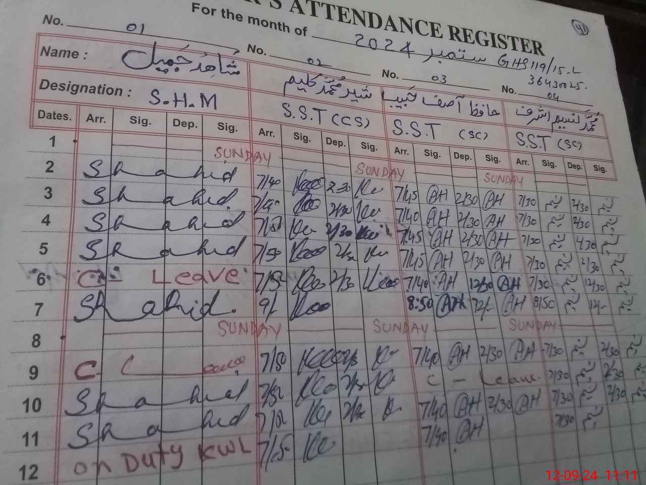 | Name: Sh**** Mu**** Ka**** Designation: (School Headmaster's/Headmistress's) SST (CS) Phone/Cell Number: 03**** |