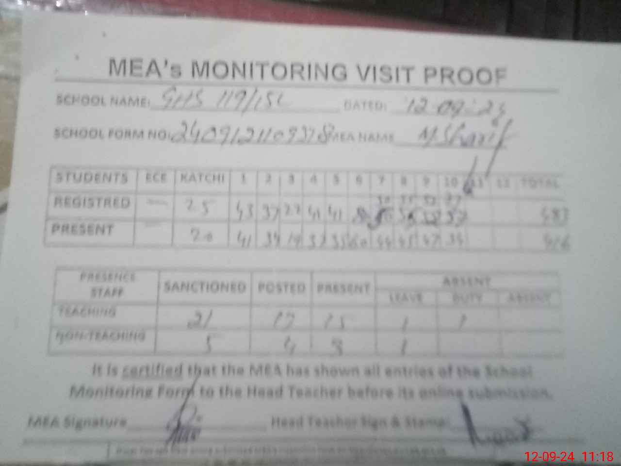 | Monitoring Date: 12-09-2024 | Start Time: 12-09-2024 08:31 AM | End Time: 12-09-2024 11:25 AM | Name of MEA: MU**** SH**** | |