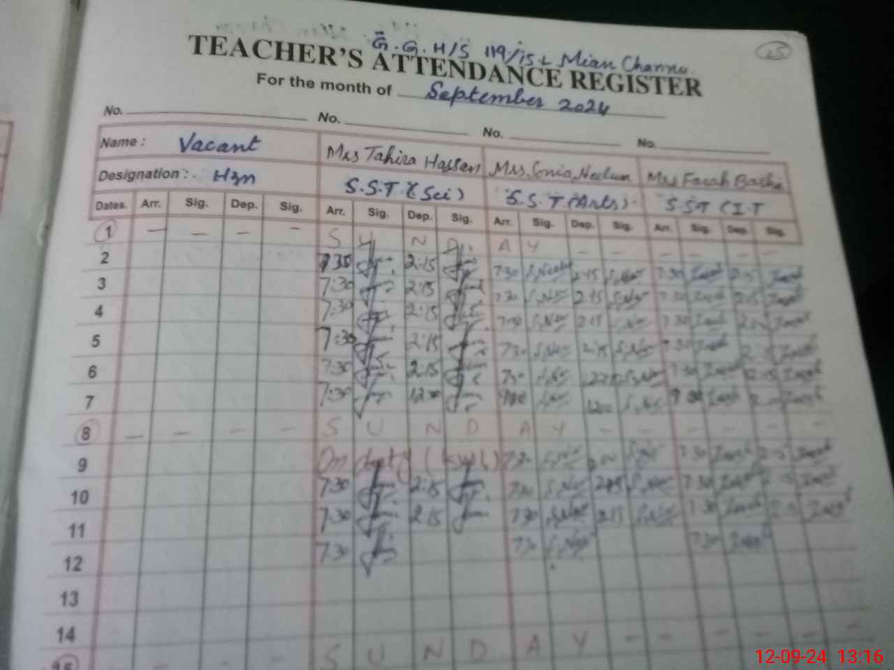| Name: Ta**** Ha**** Designation: (School Headmaster's/Headmistress's) SST Science Phone/Cell Number: 03**** |