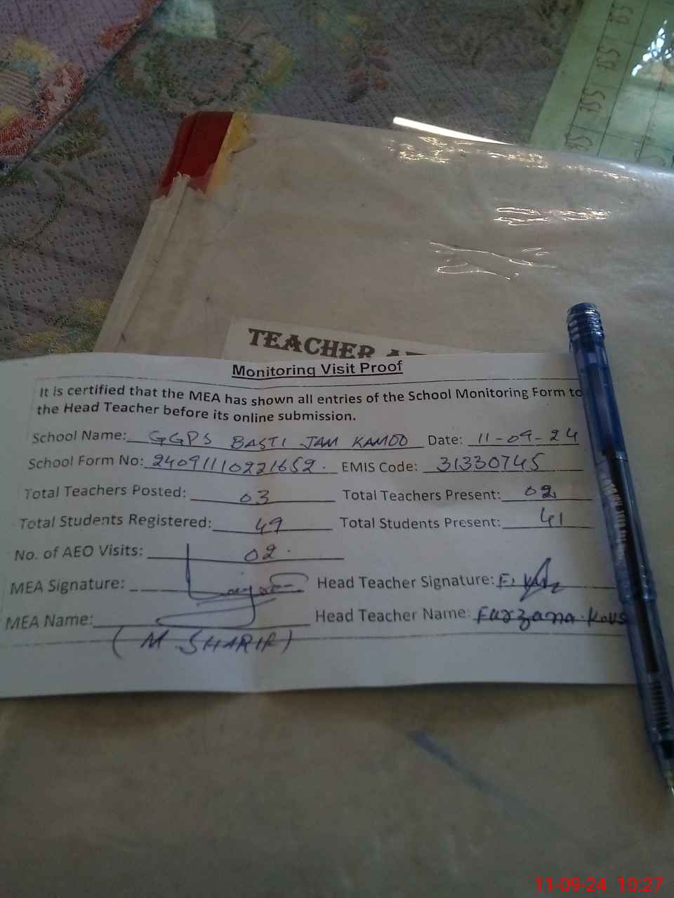 | EMIS Code: 31330745 | Name of School: GGPS BASTI JAM KAMOO | |||