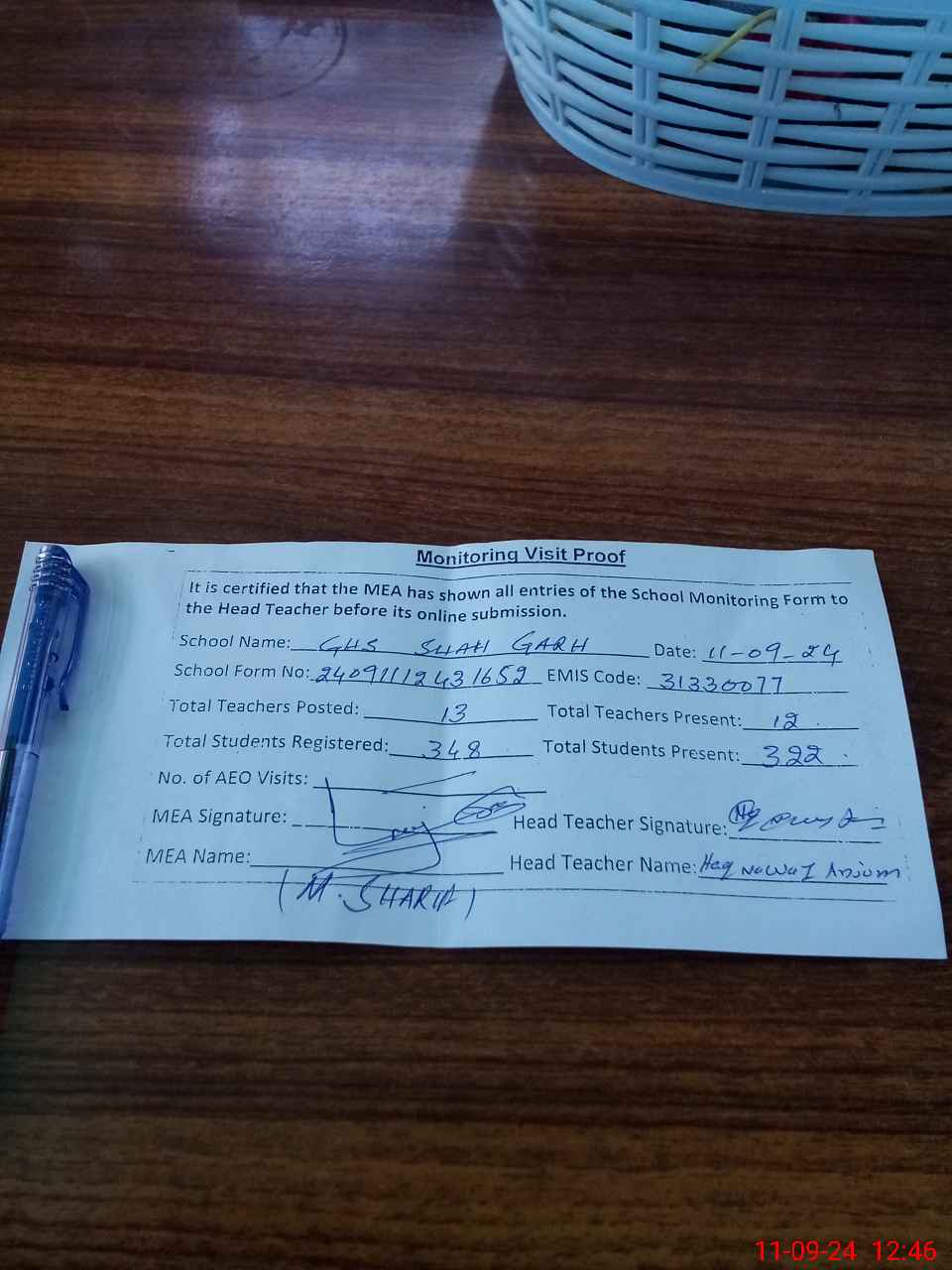 | EMIS Code: 31330077 | Name of School: GHS SHAH GARH | |||