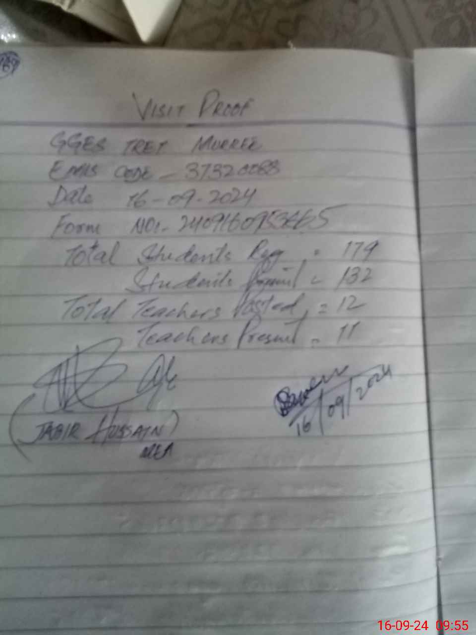 | Attendance Register | Head Teacher | MEA with School | Visit Proof |