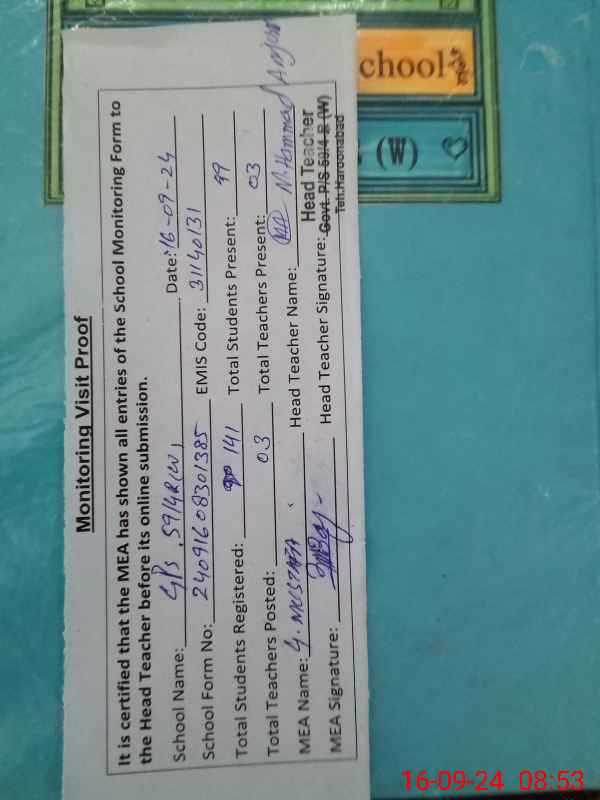| Name: Mu**** Ha**** Designation: (School Headmaster's/Headmistress's) PST Phone/Cell Number: 03**** |
