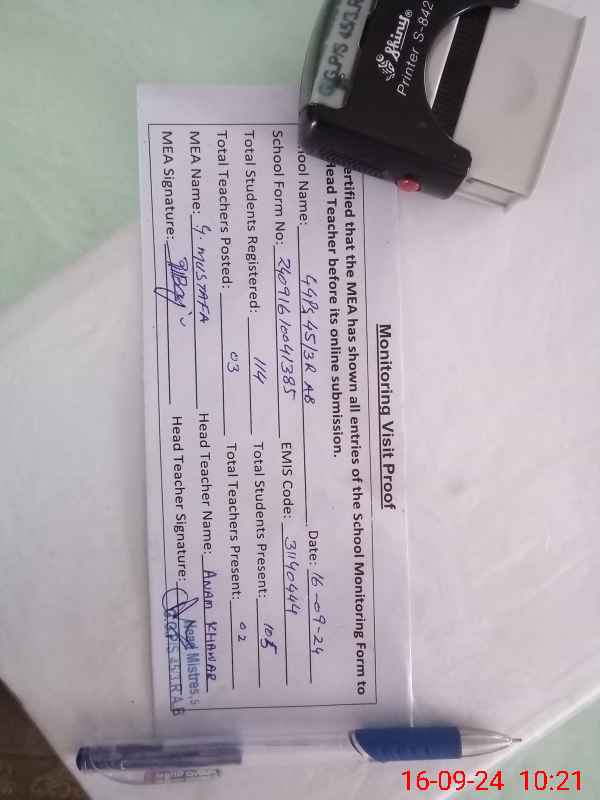 | Certified that this School was Inspected by the Undersigned MEA/DMO Today and the Information Stated Above is as Per Record. | |||||