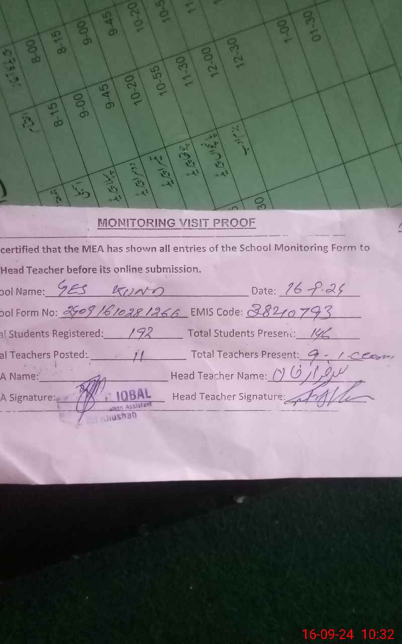 | EMIS Code: 38210793 | Name of School: GES KUND | |||