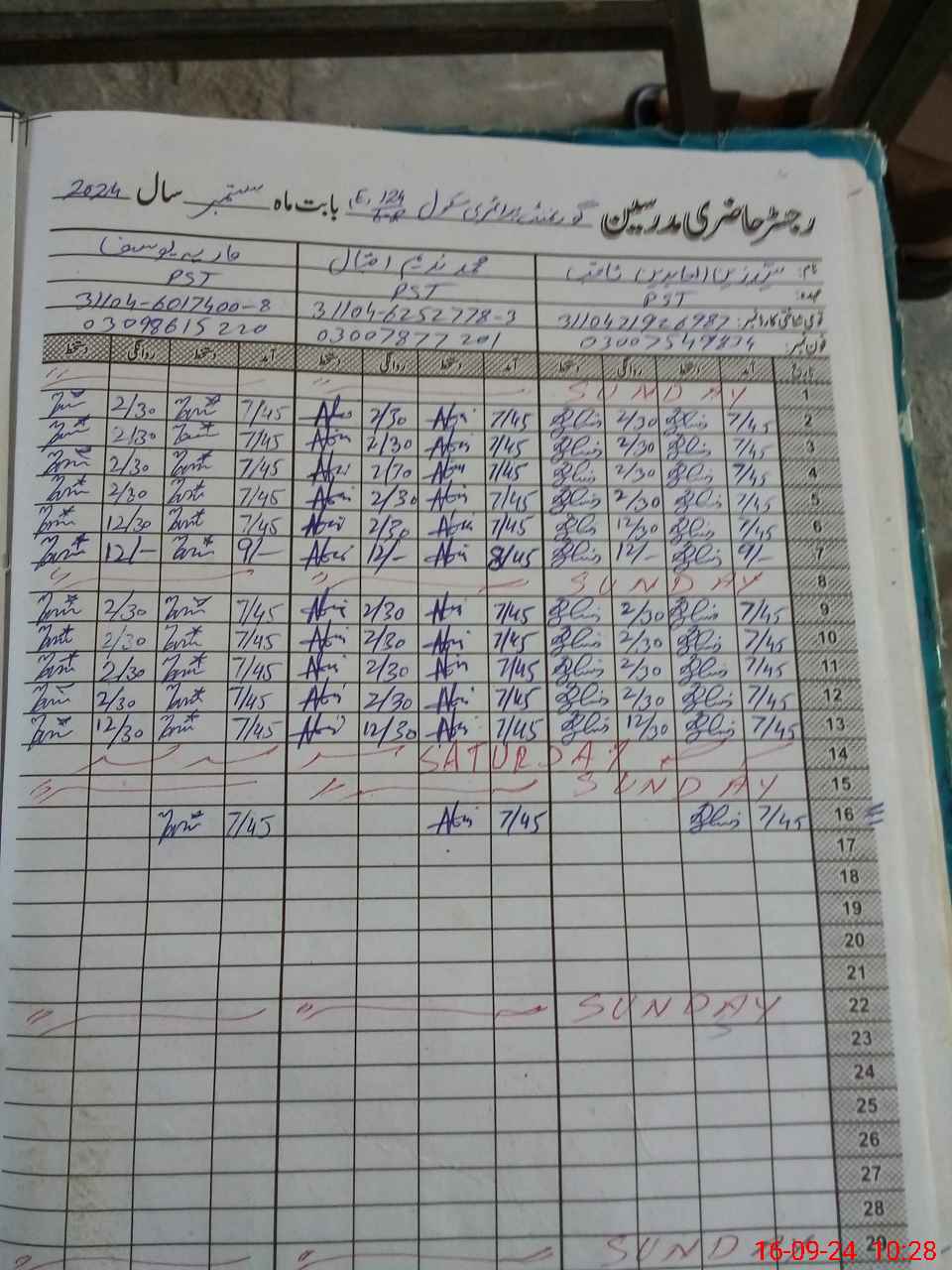 | CNIC | Full Name | Designation | R/C | Absence During Last Calender Month |