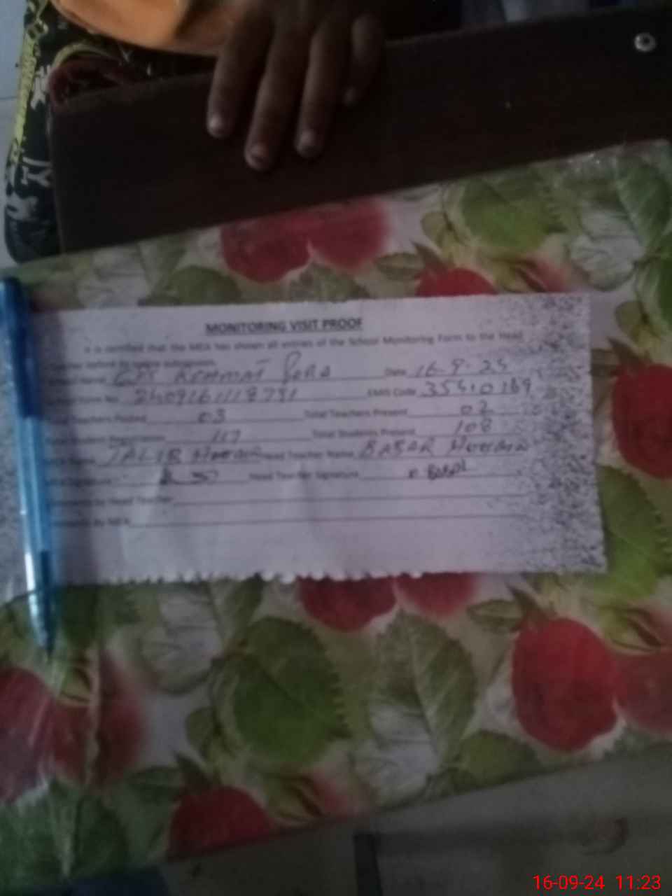 | Attendance Register | Head Teacher | MEA with School | Visit Proof |