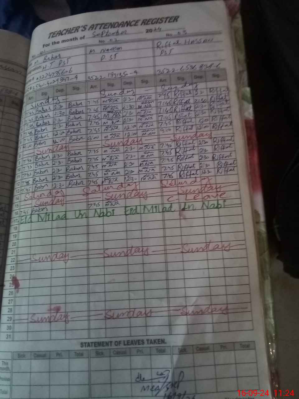 | 35**** | Sy**** Ri**** Ha**** Na**** | PST | Regular | 0 | 0 | 0 | 0 | 0 | 0 | 0 | 0 | 0 | Casual |