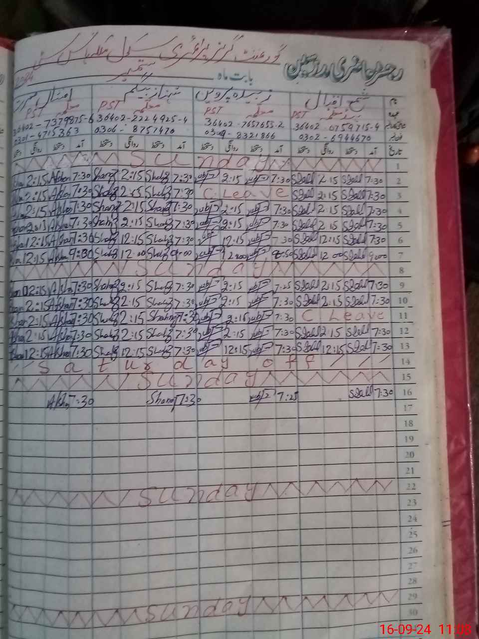 | Leave | Duty | Absent | Maternity | Medical | Ex- Pak |