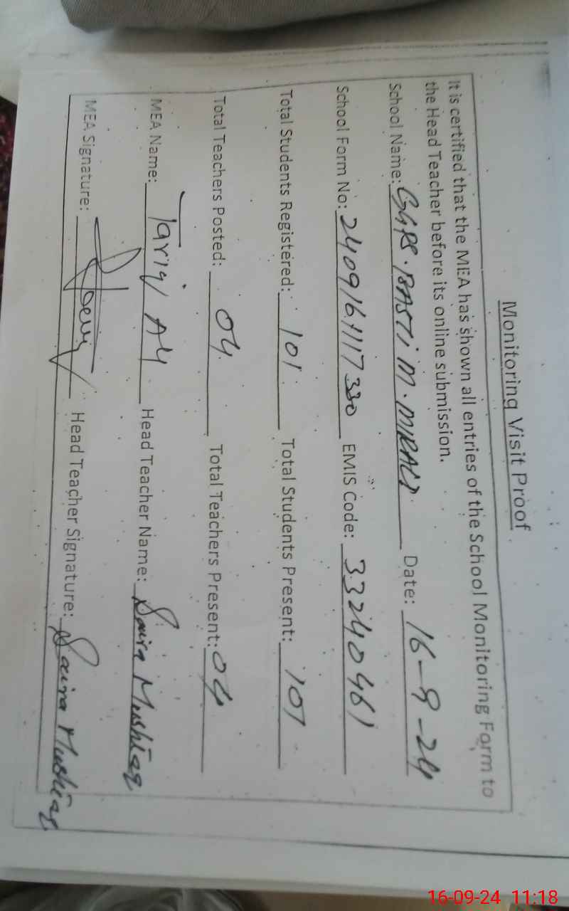 | EMIS Code: 33240461 | Name of School: GGPS BASTI MUHAMMAD MARALI | |||