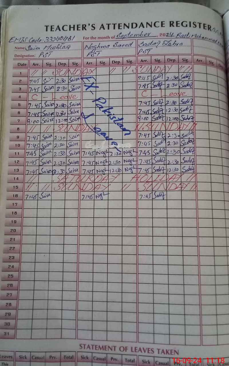 | Leave | Duty | Absent | Maternity | Medical | Ex- Pak |
