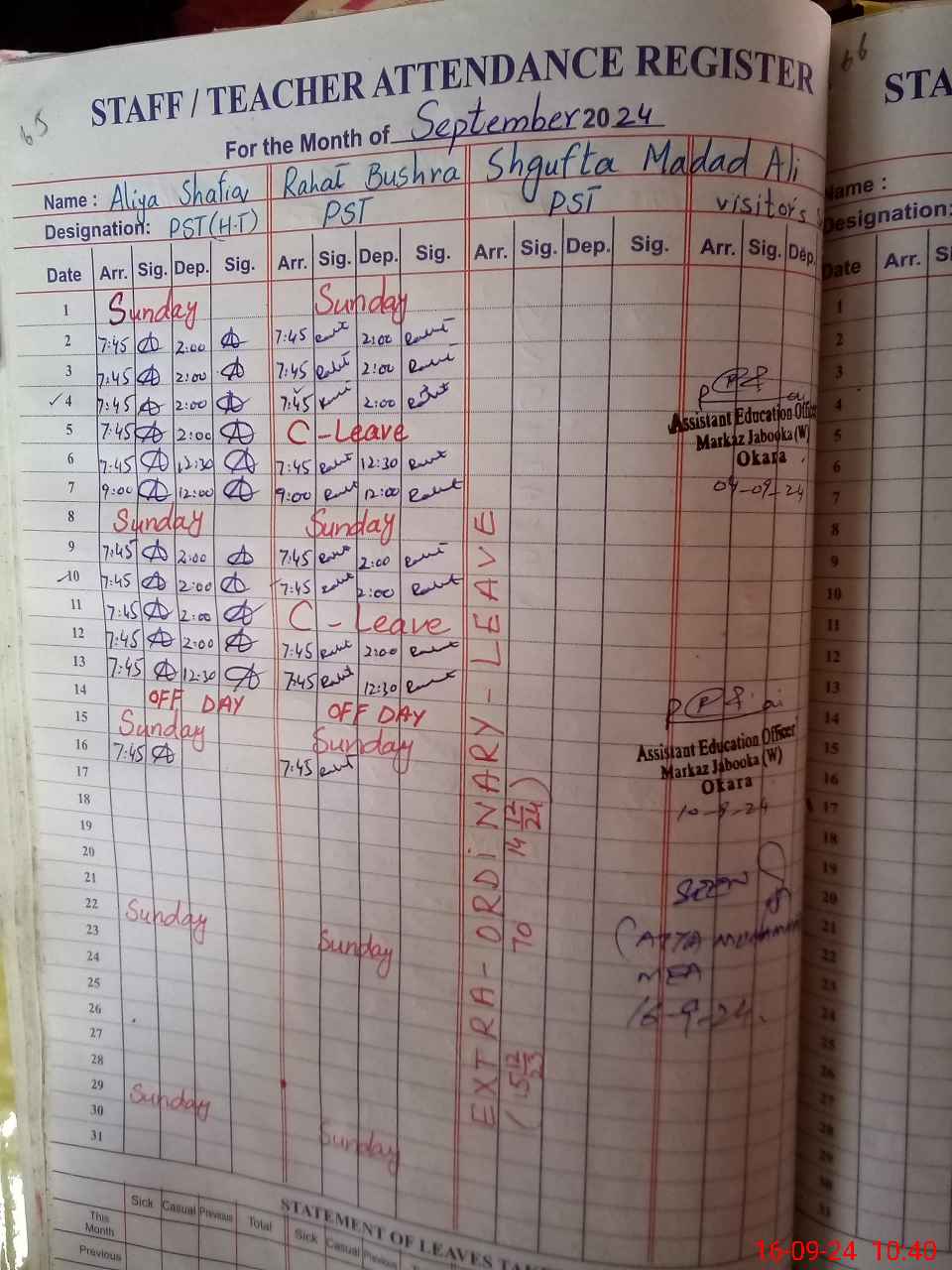 | Leave | Duty | Absent | Maternity | Medical | Ex- Pak |