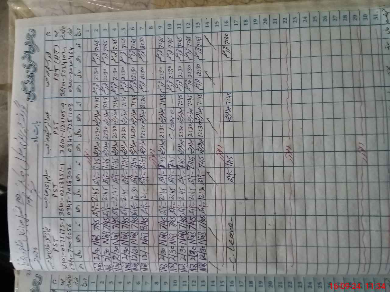 | CNIC | Full Name | Designation | R/C | Absence During Last Calender Month |