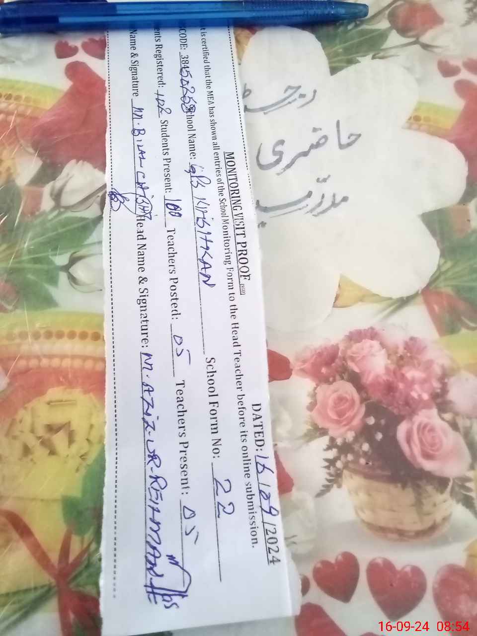 | EMIS Code: 38450258 | Name of School: GPS KHISHKAN | |||