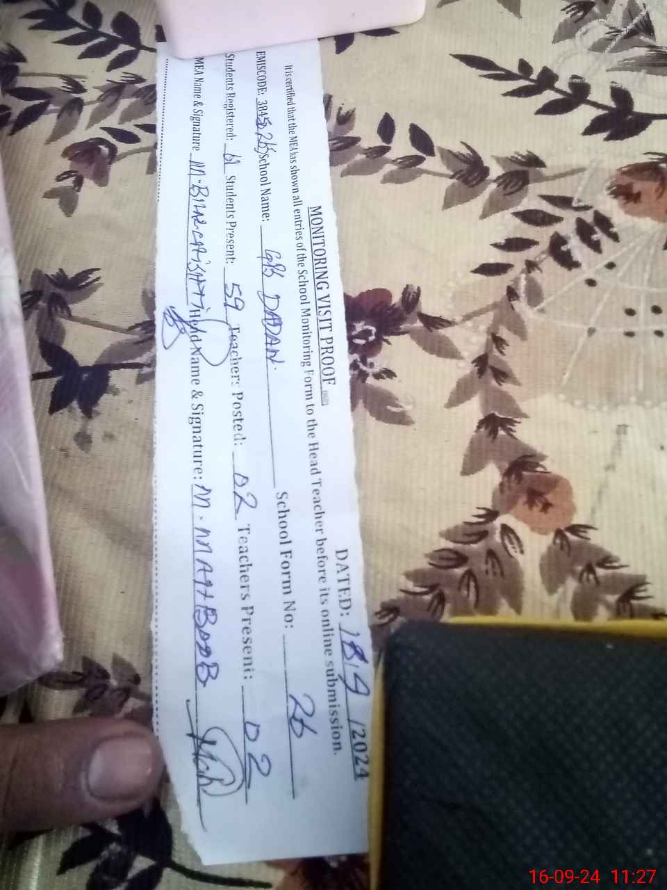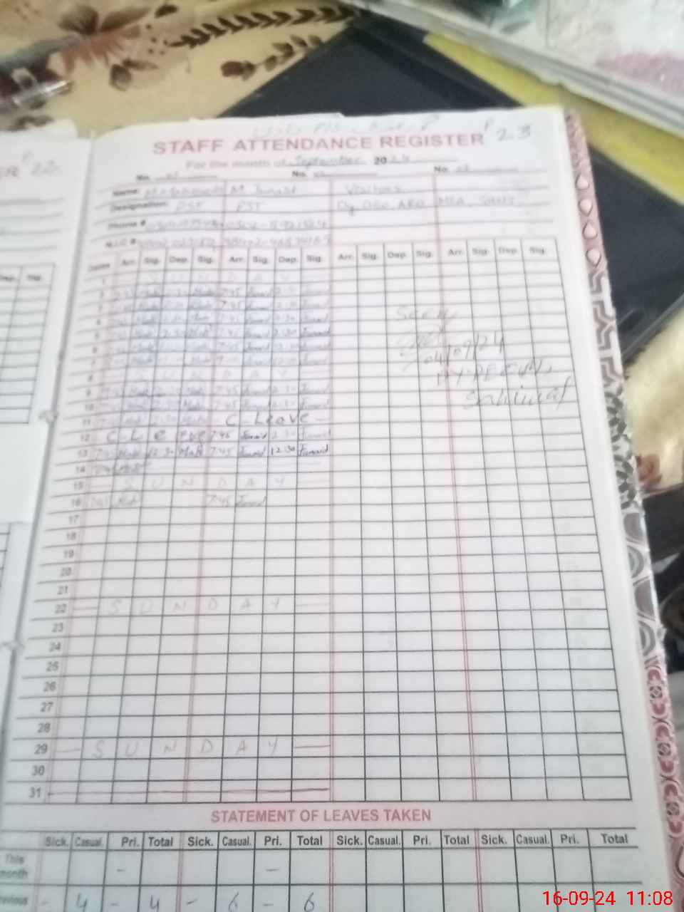 | Name: MU**** JU**** Designation: (School Headmaster's/Headmistress's) PST Phone/Cell Number: 03**** |
