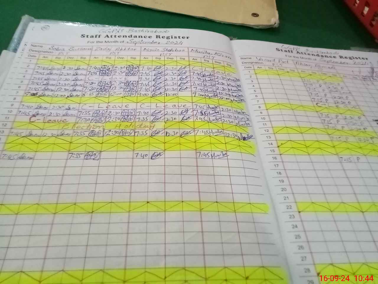 | Leave | Duty | Absent | Maternity | Medical | Ex- Pak |