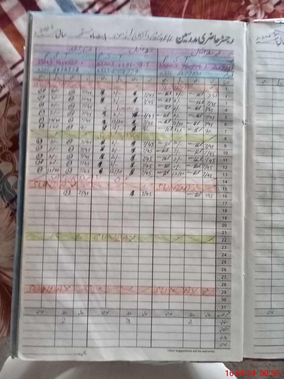 | CNIC | Full Name | Designation | R/C | Absence During Last Calender Month |