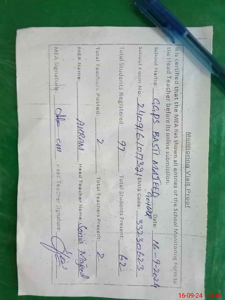 | EMIS Code: 33230623 | Name of School: GGPS BASTI MAJEED GOHAR | |||