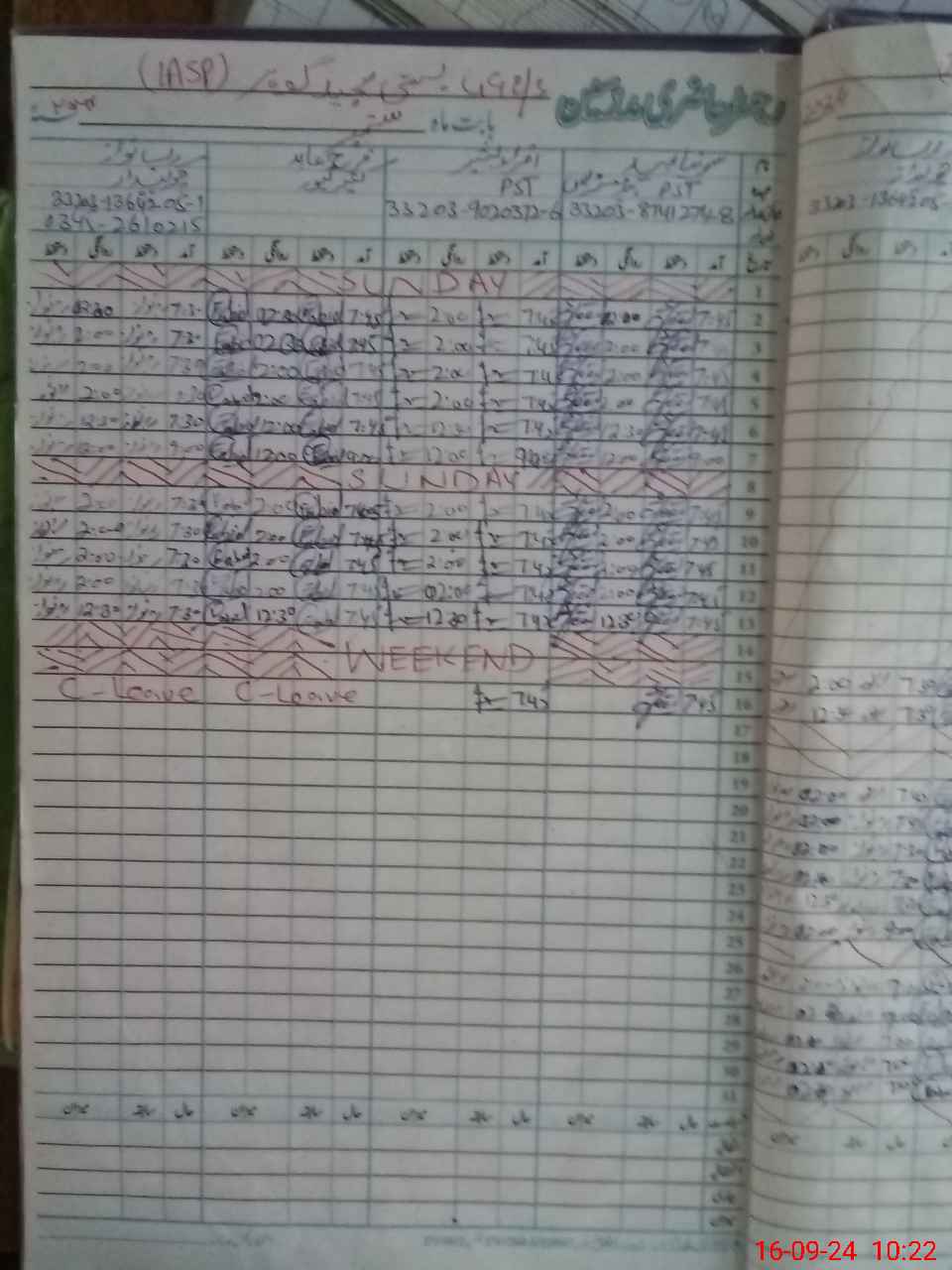 | 33**** | RA**** NA**** | CHOWKI DAR | 0 | 0 | 0 | 0 | 0 | 0 | 0 | 0 | 0 | Absent (Un-Authorized) | |