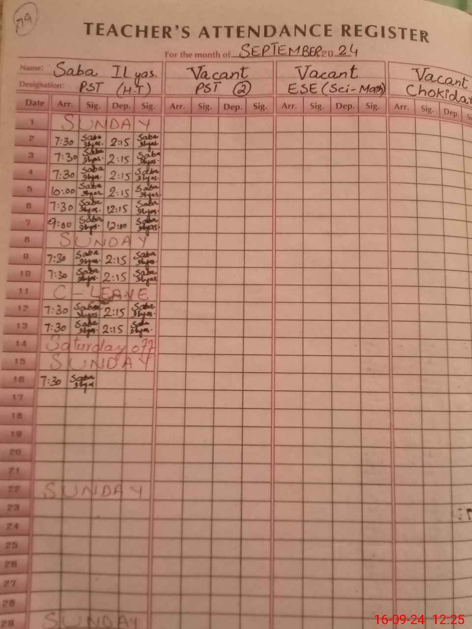| Name: Sa**** Il**** Designation: (School Headmaster's/Headmistress's) ESE (SCI-MATH) Phone/Cell Number: 03**** |