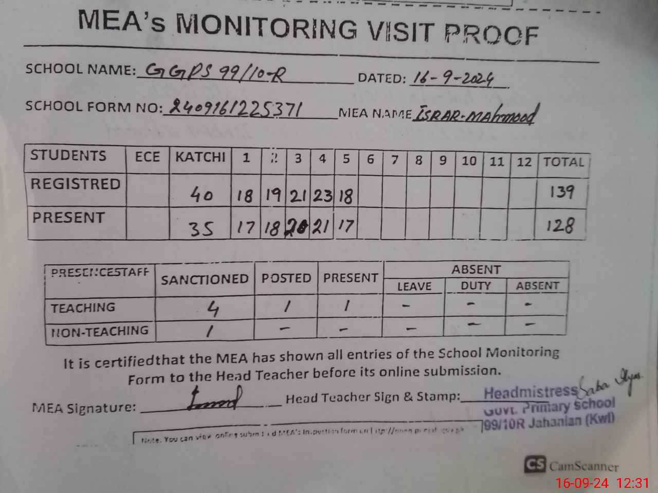 | EMIS Code: 36440524 | Name of School: GGPS 99/10-R, JAHANIAN | |||