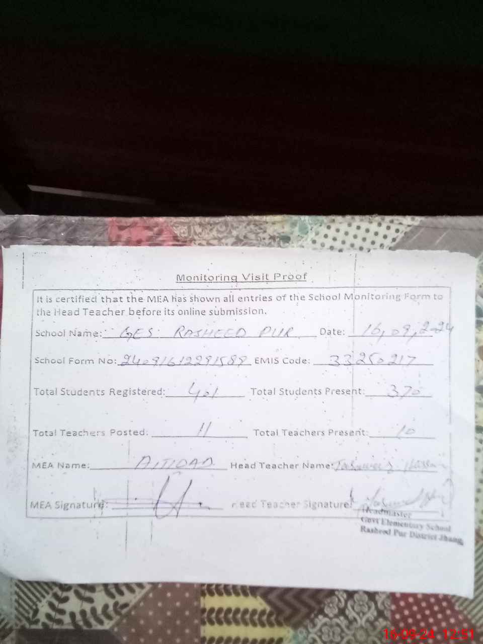 | EMIS Code: 33250217 | Name of School: GES RASHEED PUR | |||