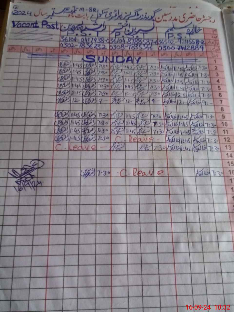 | Name: KH**** SA**** Designation: (School Headmaster's/Headmistress's) PST Phone/Cell Number: 03**** |