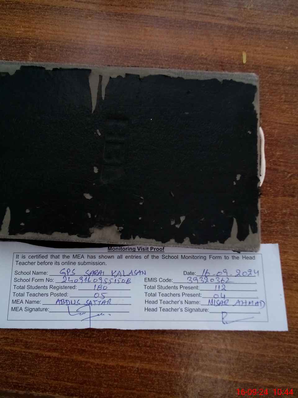 | Attendance Register | Head Teacher | MEA with School | Visit Proof |