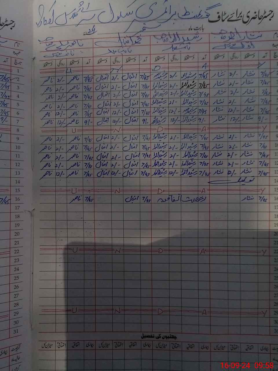 | CNIC | Full Name | Designation | R/C | Absence During Last Calender Month |
