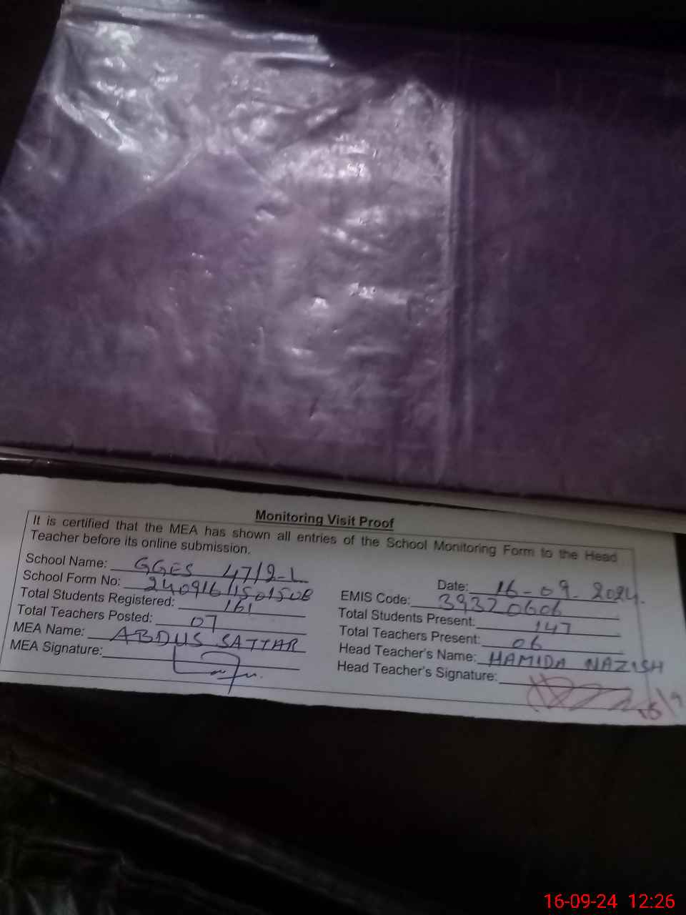 | Certified that this School was Inspected by the Undersigned MEA/DMO Today and the Information Stated Above is as Per Record. | |||||