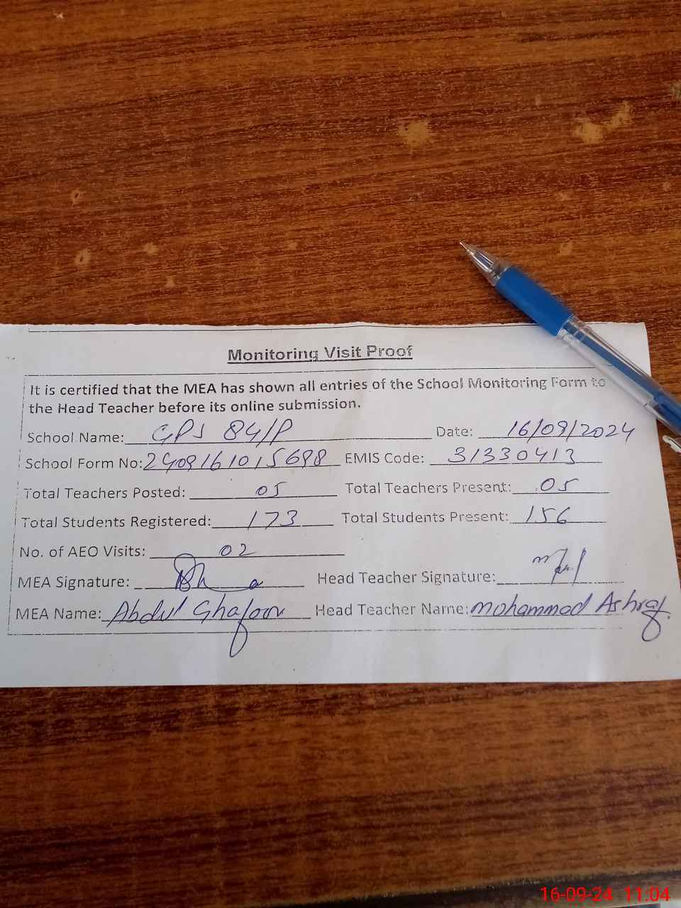| EMIS Code: 31330413 | Name of School: GPS CHAK 84/P | |||