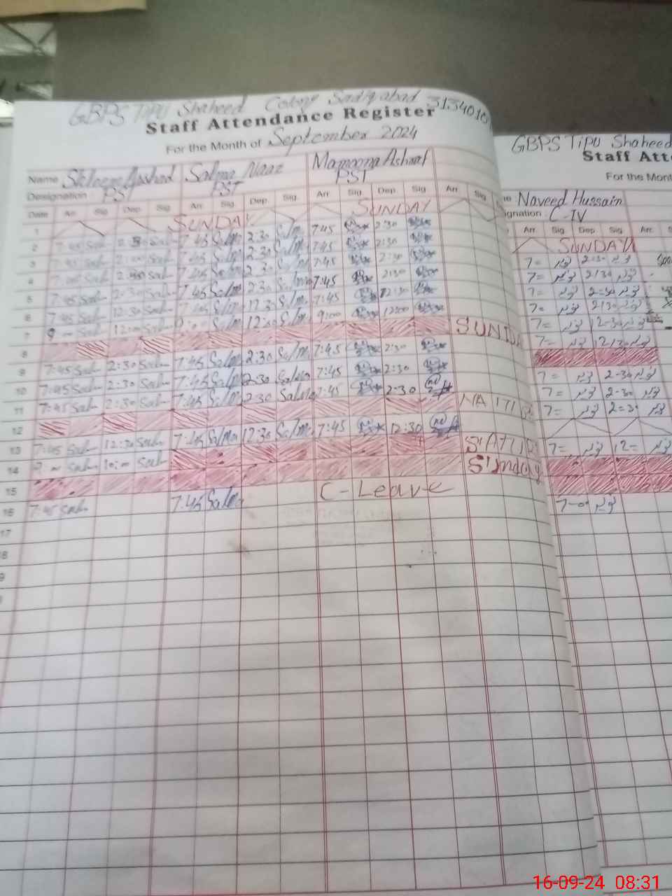 | CNIC | Full Name | Designation | R/C | Absence During Last Calender Month |