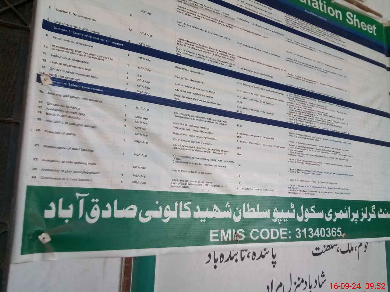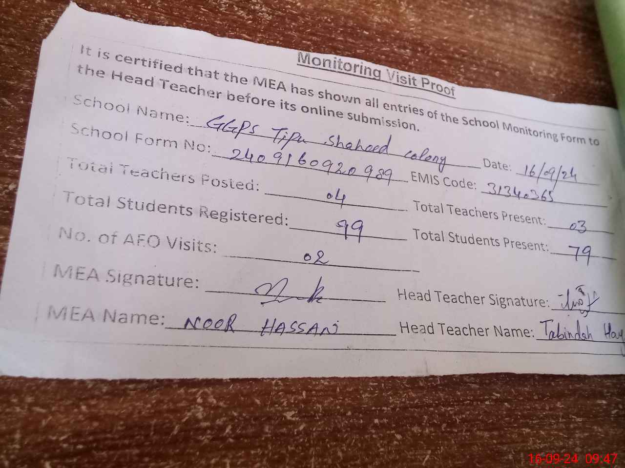 | EMIS Code: 31340365 | Name of School: GGPS TIPU SHAHEED COLONY | |||