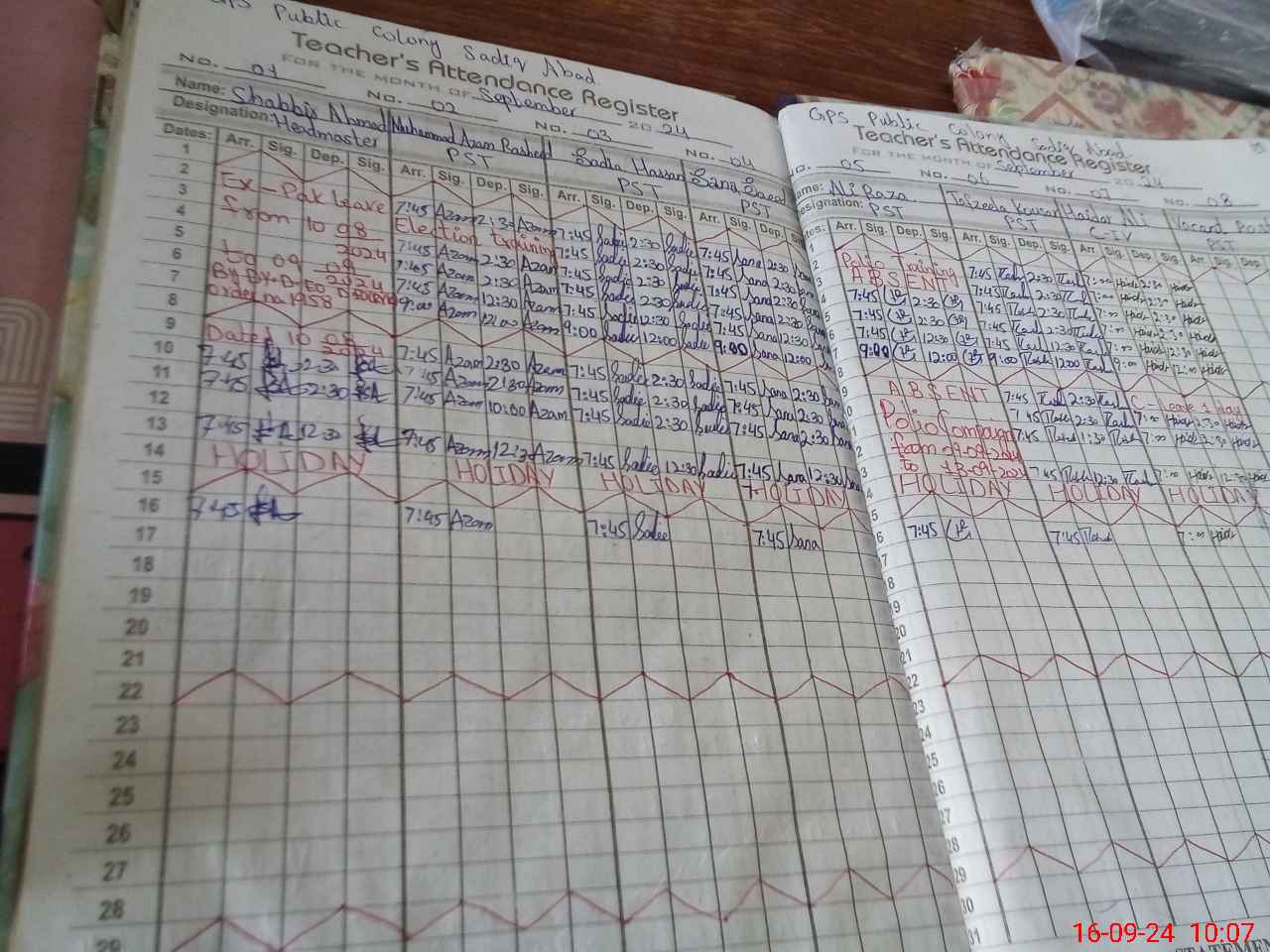 | Leave | Duty | Absent | Maternity | Medical | Ex- Pak |