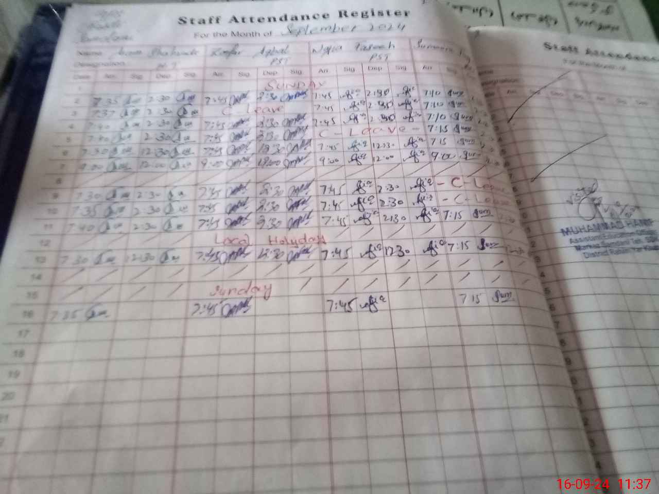 | CNIC | Full Name | Designation | R/C | Absence During Last Calender Month |