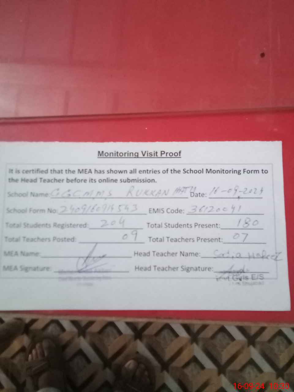 | EMIS Code: 36120041 | Name of School: Govt. Model Middle School Rukkan Hatti | |||