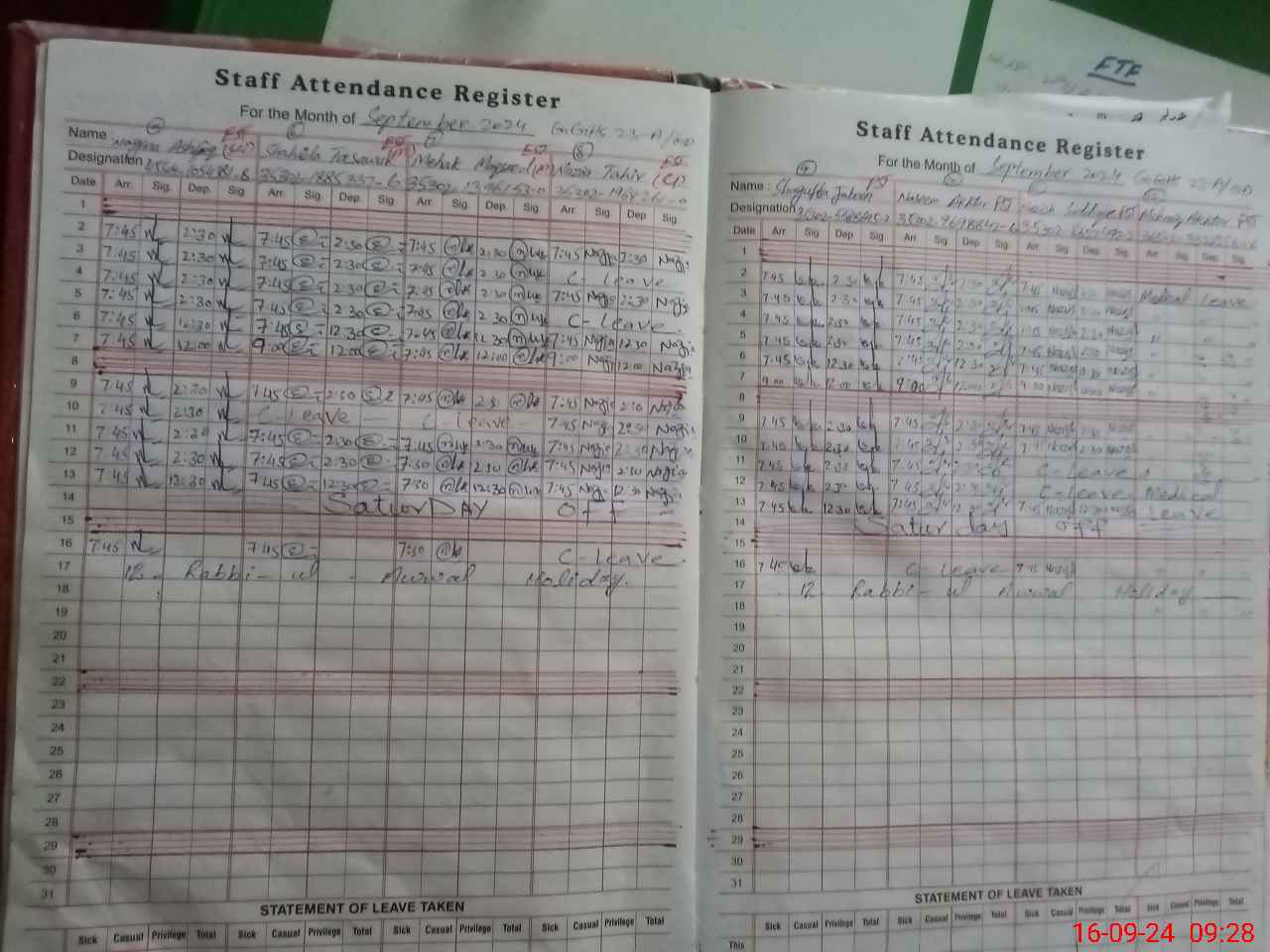 | Leave | Duty | Absent | Maternity | Medical | Ex- Pak |