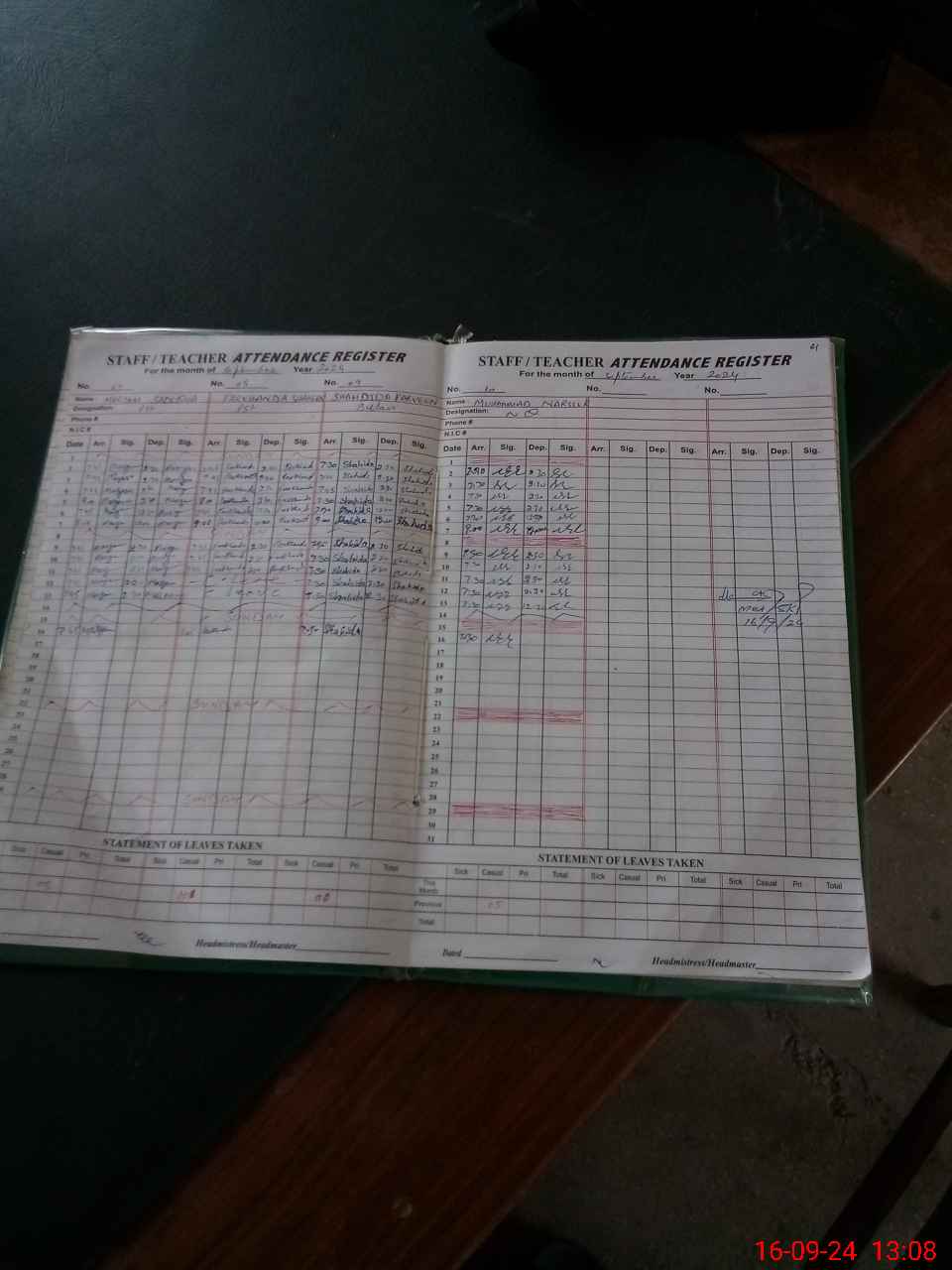 | CNIC | Full Name | Designation | R/C | Absence During Last Calender Month |