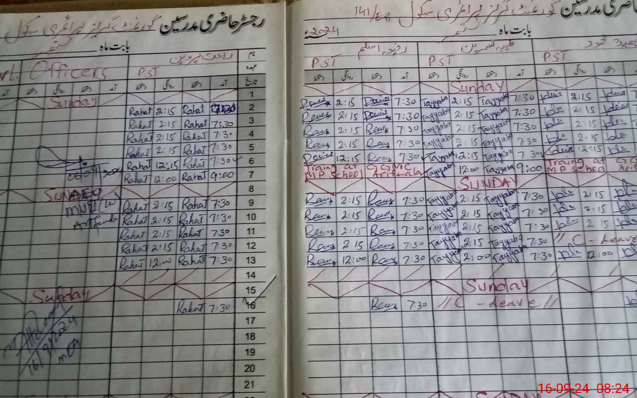 | CNIC | Full Name | Designation | R/C | Absence During Last Calender Month |