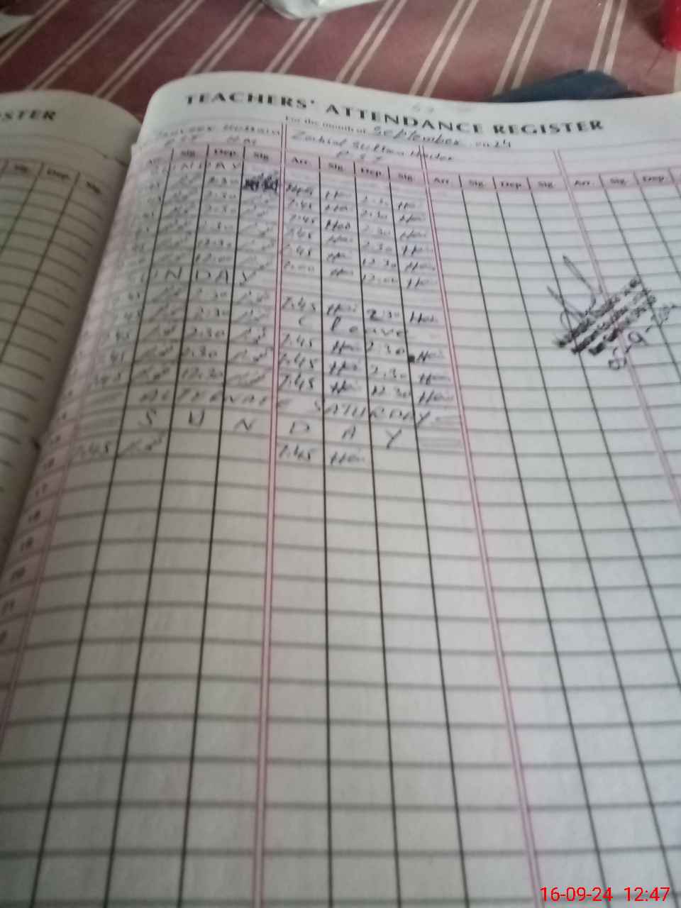 | CNIC | Full Name | Designation | R/C | Absence During Last Calender Month |