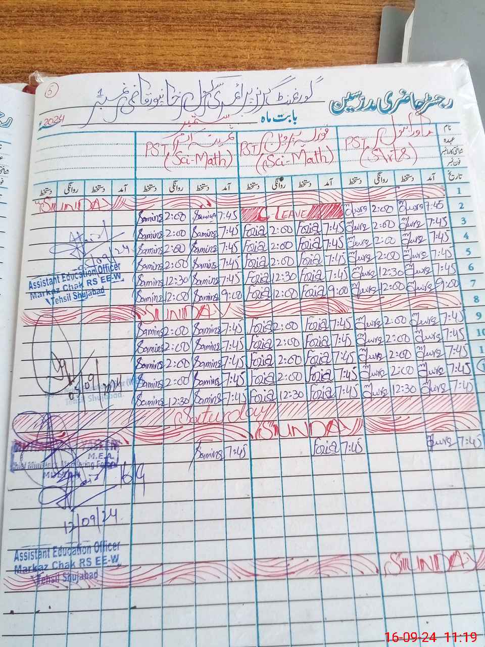 | CNIC | Full Name | Designation | R/C | Absence During Last Calender Month |