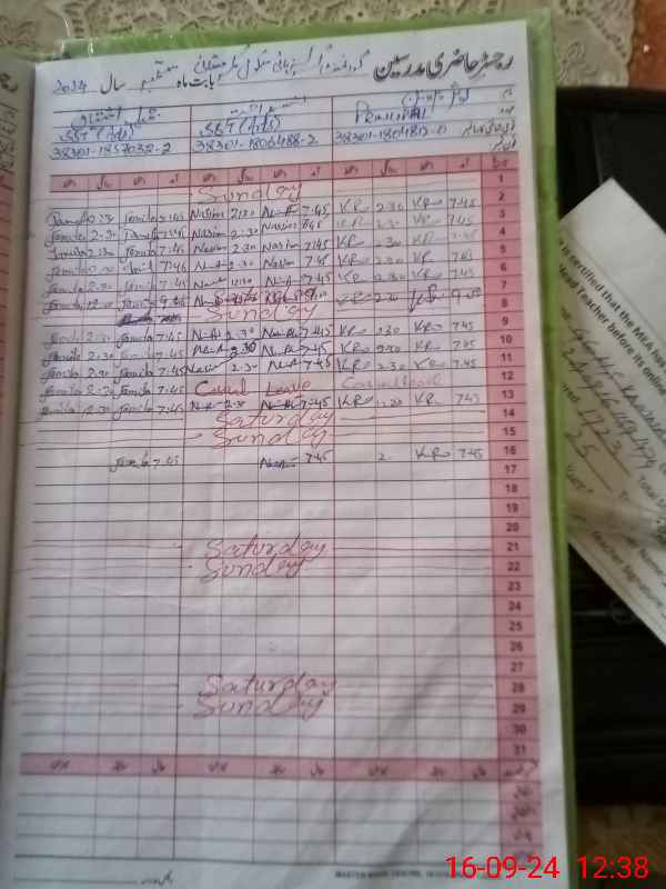 | CNIC | Full Name | Designation | R/C | Absence During Last Calender Month |
