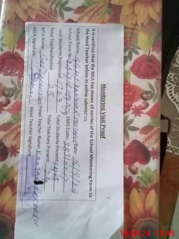 | Attendance Register | Head Teacher | MEA with School | Visit Proof |