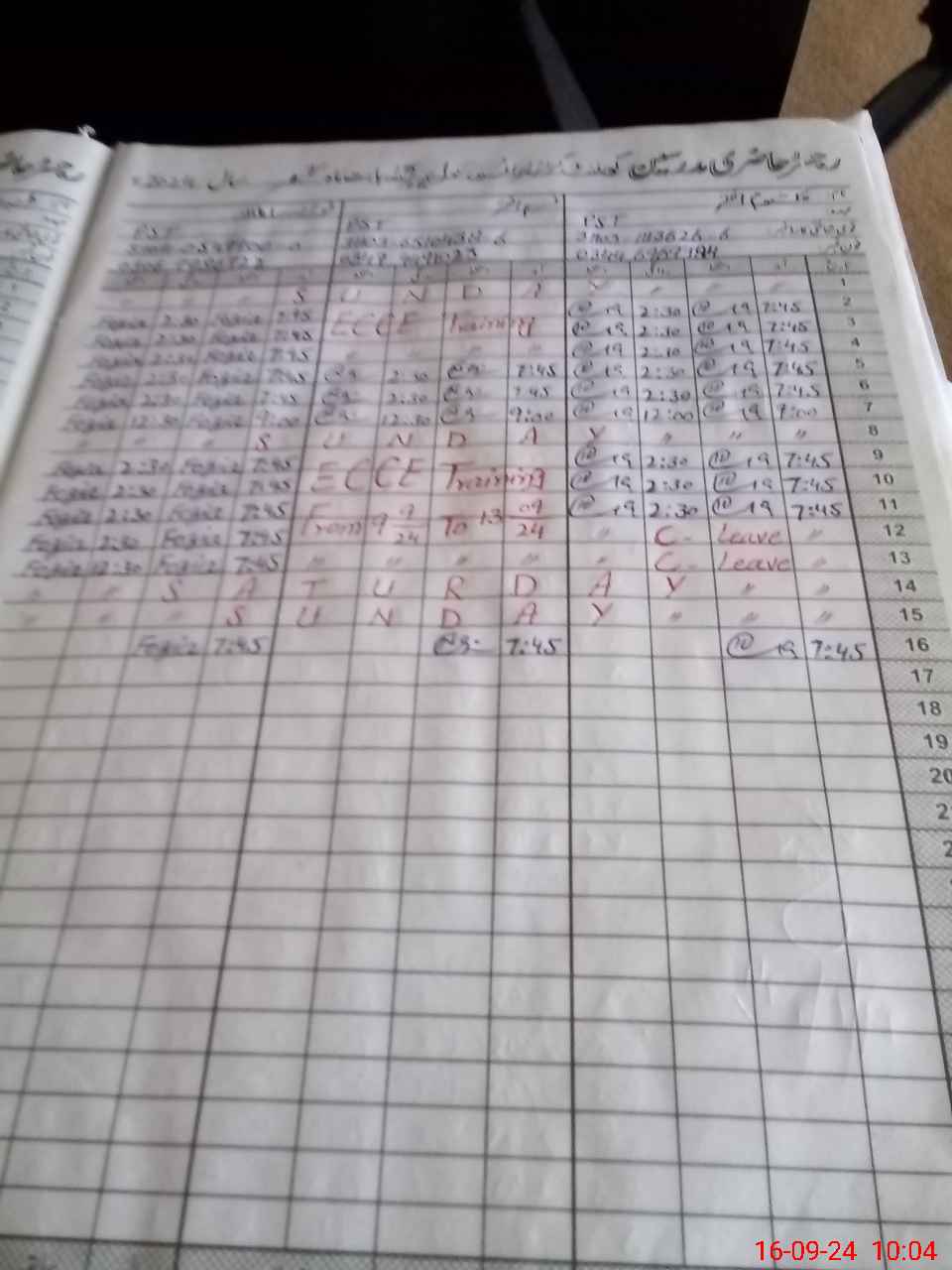 | Leave | Duty | Absent | Maternity | Medical | Ex- Pak |