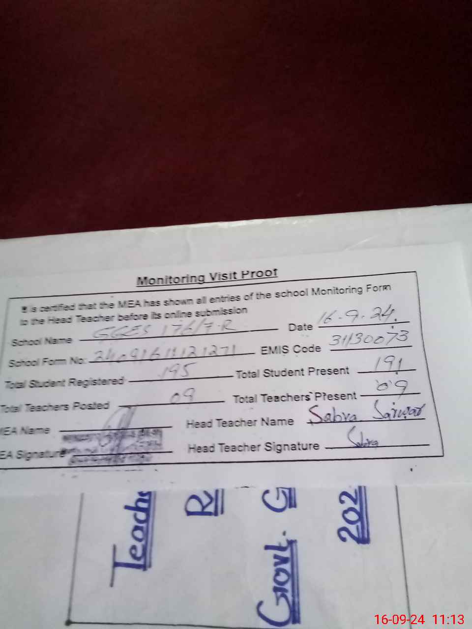 | EMIS Code: 31130073 | Name of School: GGES CHAK NO.176/7-R | |||