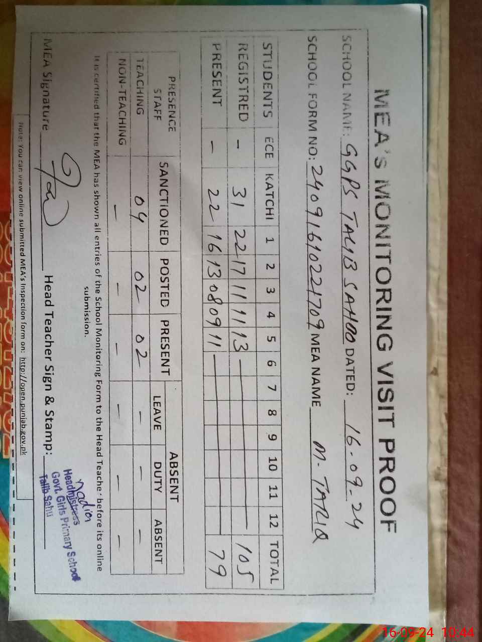 | EMIS Code: 36410600 | Name of School: GGPS TALIB SAHOO | |||