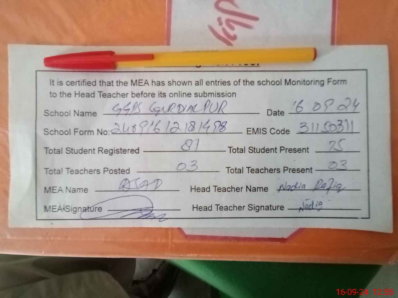 | EMIS Code: 31150311 | Name of School: GGPS GURDIAL PUR | |||