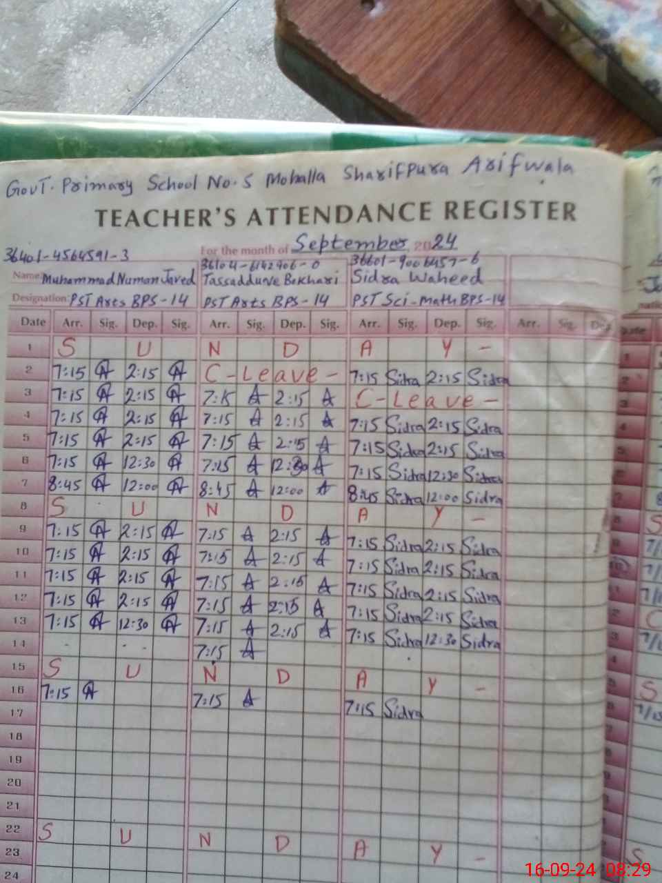 | Name: MU**** NA**** Designation: (School Headmaster's/Headmistress's) PST Phone/Cell Number: 03**** |